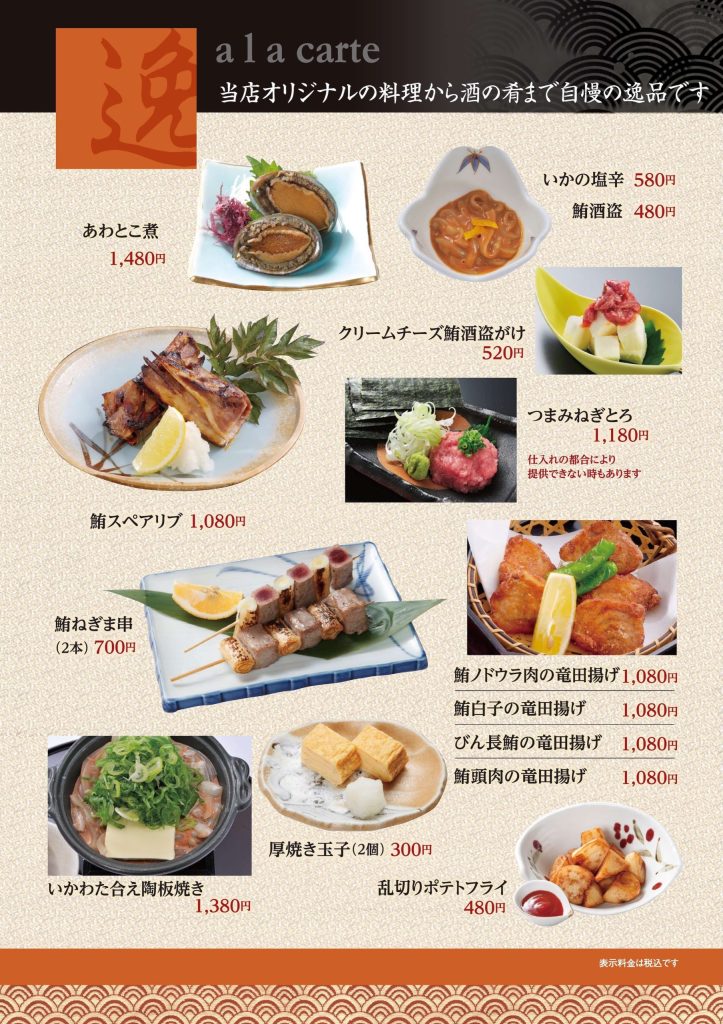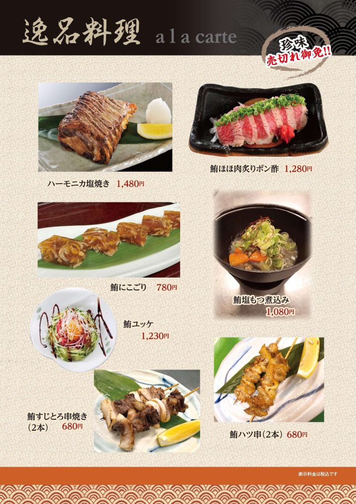 鮪のハツ、胃袋、白子、ハーモニカ、頭肉、頬肉、のど裏肉、筋とろ、とろ皮、など、鮪専門店ならではの、色々な希少部位が食べられます。その日の仕入状況により提供できない部位もございます。